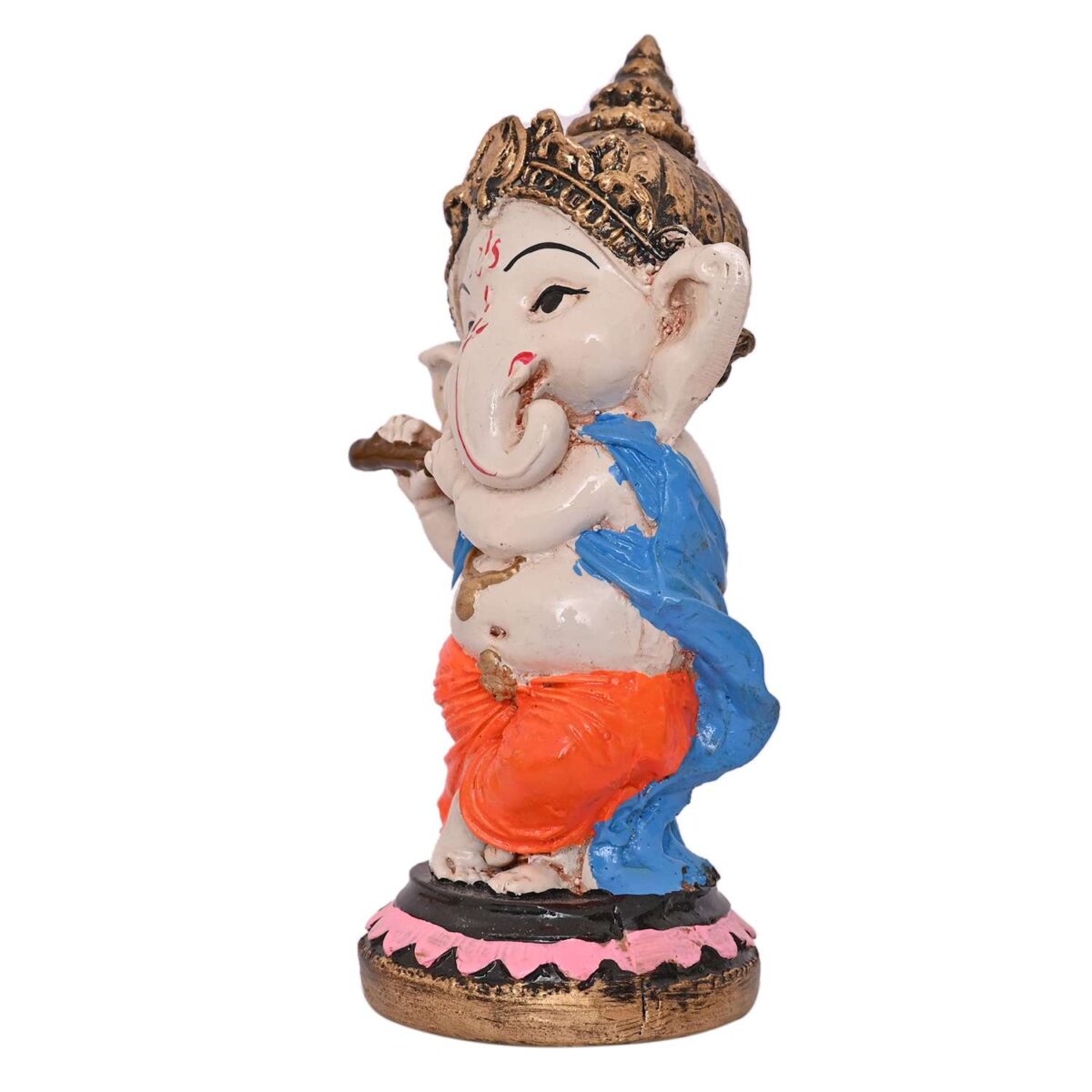 Resin Playing Flute Ganesh Idol Statue Best For Home & Office Decor (Flute Vinayak), Multi Colour