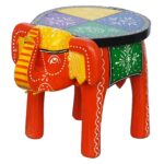Handcrafted and Emboss Painted Colorful Wooden Elephant Shape Stool Table Clourfull