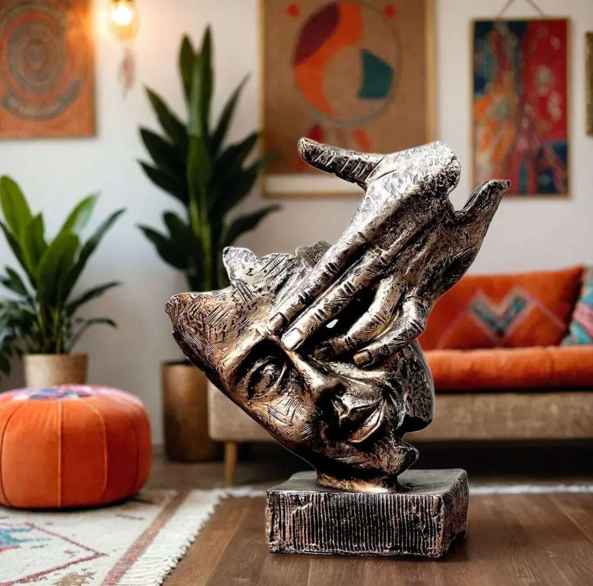 Presents You a New series of Decorative Showpiece Which We can Give Gift To someone Special and also we can use them for Home D?cor Purpose.Everyone wants perfect peace of mind that’s free from ignorance, greed, hatred and other afflictive states. Handicraft Human Face On Hand Statue Showpieces has always been a great symbol of peace. So, what could be a better gift or a better option to bring home than the Figurine of Human Face On Hand statue showpiece. The Human Face On Hand Figurine is made of premium quality polyresin and has been designed beautifully. This Figurine Human Face On Hand statues showpiece for home decor, car dashboard, living room, bedroom etc. Best Gift Or A Better Option To Bring Home Than The Figurine Of A Human Face On Hand statue . A Perfect Gift : It Is A Best Gift For Marriage Anniversary , Parents , Mothers Day , Wedding Gift , Birthday , House Warming , Office / Shop Inaugration , Festive Occasions – Like Diwali ,Raksha Bandhan , Grah Pravesh And Corporate Gifts. Human Face On Hand Statue Big Size Bring Prosperity and Success . A Positive Impact : As Per Vastu Methology Religious Spritual Figurine Statue Showpieces Placed In North East Direction Of Drawing / Living , Brings Wealth , Health , Peace And Happiness Among The Home Members. Modern Art Human Face On Hand Figurine Statue of Premium quality material and has been designed beautifully.This Human Face On Hand statue showpiece used for table decor, table decorations, office decorations, showpiece for car,showcase decorations,showpiece items,showpiece for living room etc. This Human Face On Hand Figurine statue showpiece is one of the most popular statues