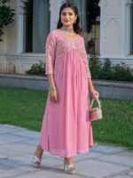 Women’s Cotton Pink embroidery work Georgette kurta set Size -M