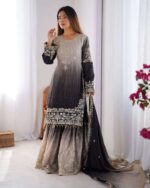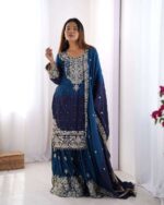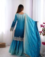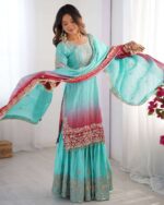 Women's Faux Georgette Sequins & Thread Work Straight Kurta With Sharara Suit and Dupatta Set Original price was: ₹5,549.00.Current price is: ₹4,499.00.