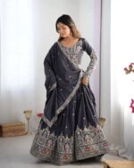 Women’s Crepe Silk Sequence Embroidery and Zari Work Rajsthani Lehenga Choli with Dupatta