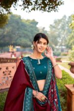 Women’s Stitched Ethnic Lehenga Choli with Zari Border and Contrast Dupatta