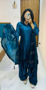 Women’s Fendi Silk Solid Muslim Straight Kurti With Pant and Dupatta set