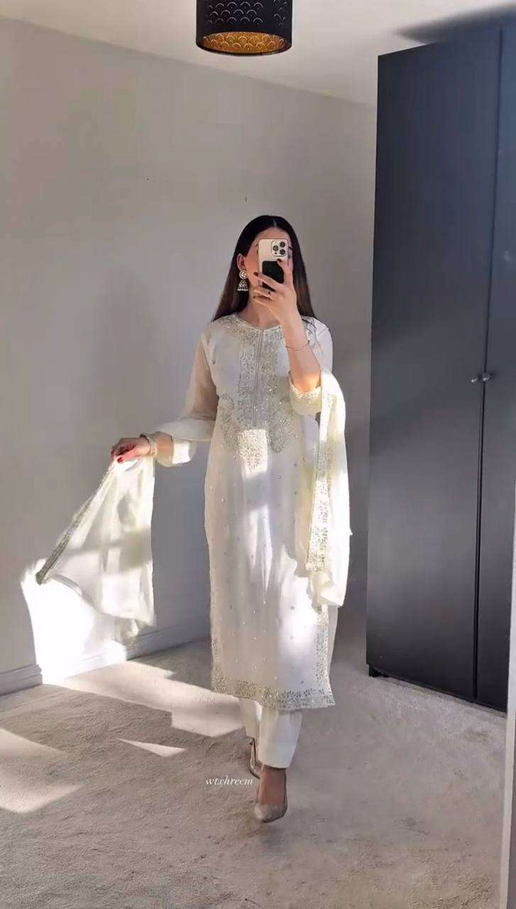Women’s Georgette Sequence Moti Work Straight Kurti With Salwar and Dupatta Set