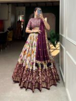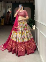 Women’s Luxurious Tussar Silk Lehenga Choli with Intricate Prints & Can-Can Flair