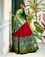 Women’s Tussar Silk Patola Print Lehenga Choli Dupatta Set