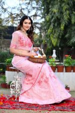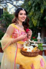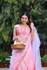 Paired with an unstitched Tussar Silk blouse and a graceful 2.4-meter dupatta featuring matching foil prints, this set is perfect for weddings, festive events, and traditional gatherings. The lightweight micro cotton inner ensures comfort all day long, while the complete package delivers both elegance and ease.
